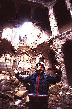 - Sono rimasto bloccato nella canonica - racconta Don Luca - e non potevo neppure andare in chiesa, che dista solo cinque metri dalla porta della canonica. Mentre in chiesa erano rimaste le suore, bloccate dal bombardamento durante il rosario. Nelle strade, le auto erano in fiamme, tutti i vetri degli edifici vicini stavano andando in frantumi, anche in chiesa le vetrate colorate si erano infrante a causa delle esplosioni, solo la vetrata di S.Andrea, allo scoppio di una granata, spalancandosi di colpo per la spinta della detonazione, rimase intatta. Da allora si mormora, scherzando, che S.Andrea, essendo un santo caro alla chiesa ortodossa, non andò in frantumi perché simpatizzante della causa serba. Poco dopo, l'ennesima esplosione sfonda il muro della chiesa, proprio sopra l'altare. Le suore all'interno dovevano essere terrorizzate. Allora, non sapendo che fare, telefonai al mio vescovo Mons. Pulic. -