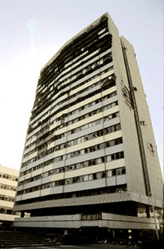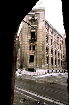 trasferita la redazione di Oslobodzenje. A destra: quello che resta della sede del Quotidiano cittadino