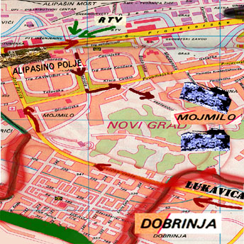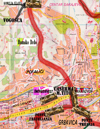 sulla strada possono cannoneggiare un ampio territorio sottostante, e colpire facilmente chiunque si avventuri sulla strada che congiunge Dobrinja con Alipasno Polije. Dalla stessa posizione, inoltre, anche i quartieri di Moimilo e Alipasno Polije, così come lo stesso edificio della televisione sono nel raggio d'azione dei carristi e degli artiglieri serbo-bosniaci.