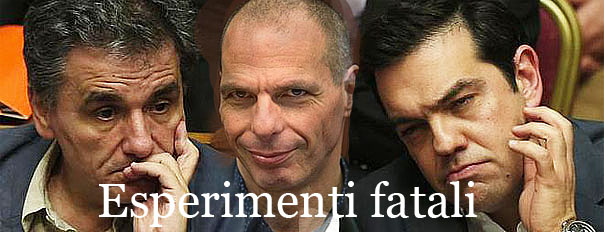 La sostanza è racchiusa in quel disinvolto passaggio dal NO al SI' alle politiche liberiste ed austeritarie imposte dall'Europa. Leonardo Mazzei - sollevazione.blogspot.it Quella notte Tsipras, anziché esultare licenziò il suo ministro dell’economia Yanis Varoufakis e il giorno dopo fece esattamente il contrario di quel che il popolo gli aveva chiesto a grandissima e, consentitemelo, commovente maggioranza … Cos’è successo quella notte? Marcello Foa - blog.ilgiornale.it/foa/ La conclusione? Né le elezioni né la Rivoluzione ci salveranno, quindi siamo spacciati.